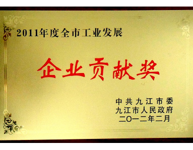 中共九江市委、九江市人民政府聯(lián)合授予“2011年度全市工業(yè)發(fā)展企業(yè)貢獻(xiàn)獎(jiǎng)”