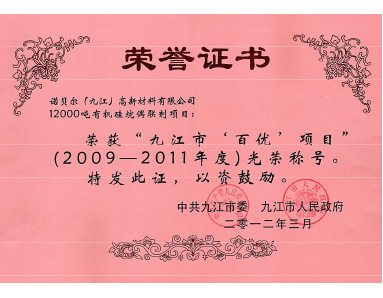 中共九江市委、九江市人民政府聯(lián)合授予“2009-2011年度九江市百優(yōu)項(xiàng)目”榮譽(yù)