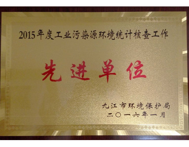 九江市環(huán)境保護(hù)局授予“2015年度工業(yè)污染源環(huán)境統(tǒng)計(jì)核查工作先進(jìn)單位”榮譽(yù)