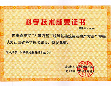 “3-氯丙基三烷氧基硅烷清潔生產(chǎn)方法”被江西省科學(xué)技術(shù)廳授予“江西省科學(xué)技術(shù)成果”榮譽(yù)