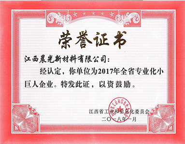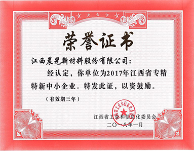 江西省工業(yè)和信息化委員會(huì)授予“2017年江西省專(zhuān)精特新中小企業(yè)”榮譽(yù)
